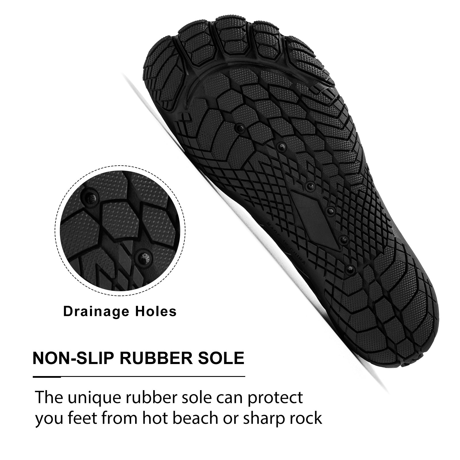 QUICK DRY WITH DRAINAGE: Made with quick dry materials and Integrated Drainage System to allow water and air to move freely making these toe shoes ideal for any water activity